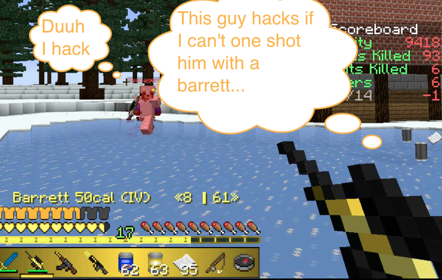 I was in a fight with a full iron who had an MSR (TeenagerLP), I had a barret. I shot him in the head and he didn't die? I am about to upload this, but shouldn't he have died? It's either that the guns are seriously nerfed or he hacks. He said he was on half a heart but that should've killed him