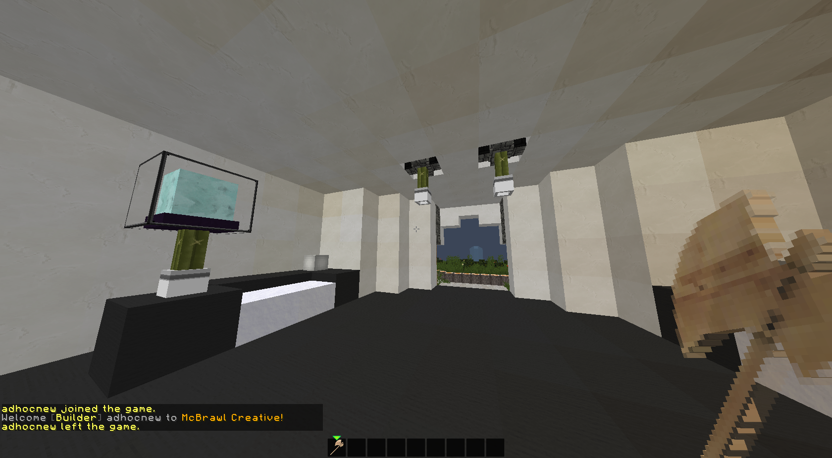These two are simple, and look a lot better then regular old glowstone/torch lighting! Another great way to spruce up whatever you are building. Please take note you MUST have WE1+ in order to do the spotlight trick. For the lantern, place a pot down, and then put a cactus in it, on top of the cactus put a beacon, and wham! you got some nice lighting for your house! For spotlights, you must first choose a light block, such as glowstone or an active furnace. Place the light source 2 blocks up in your ceiling, then below it place a cobblestone wall. The cobblestone wall should be level with the rest of your ceiling. Then, place a block below it, turn it into a flower pot with world edit (//set) and then put a cactus in that. Now you have s spotlight hanging from your ceiling :smile: The result should look like these two. The lantern is on the left, by the way.