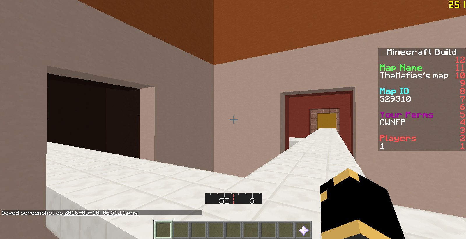 Two or one player must find the other players in specially designed rooms for HnS(Hide and Seek). The seekers get compasses to point towards the nearest player until within 30 blocks of them (Which is the size of two rooms). There are no Maze Tools in this game mode.