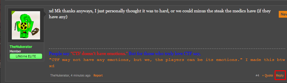 | Underappreciated Medics in CTF | Suggestions / Ideas | Jan 3, 2017 |