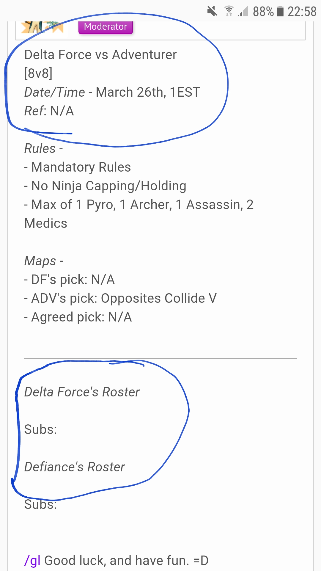 I copied my format from a previous match thread I made and forgot to change that. It's fixed now though!