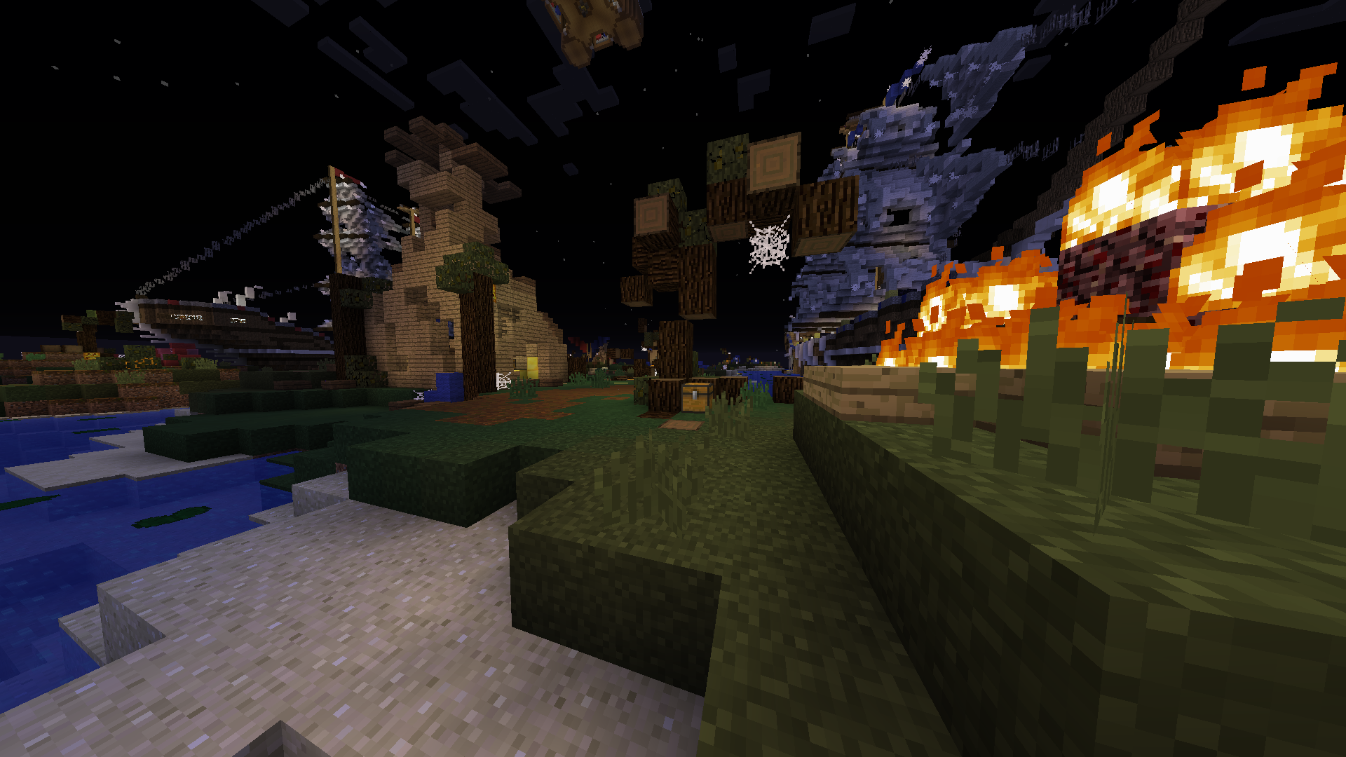 Style: Following the desert island style we incorperated a more spooky theme to the map, ghost/halloween however you want to call it. Still keeping its key features and style of gameplay.