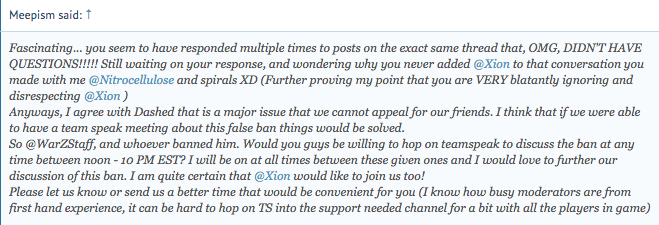 True, as I said in other posts if the appeal is valid it needs to be accepted. Anyways, they are going against their own policy if they don't unban him.