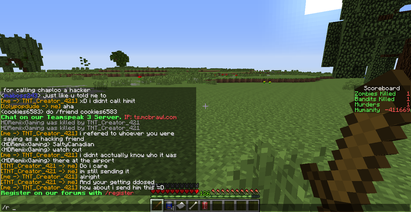 Hey I was threatened just moments ago to be ddos'd and banned by TNT_Creator_421. Need proof? see for yourself, We were fighting about him hacking, Sadly dont have proof of that so can't prove it but then he said things of that nature a few times